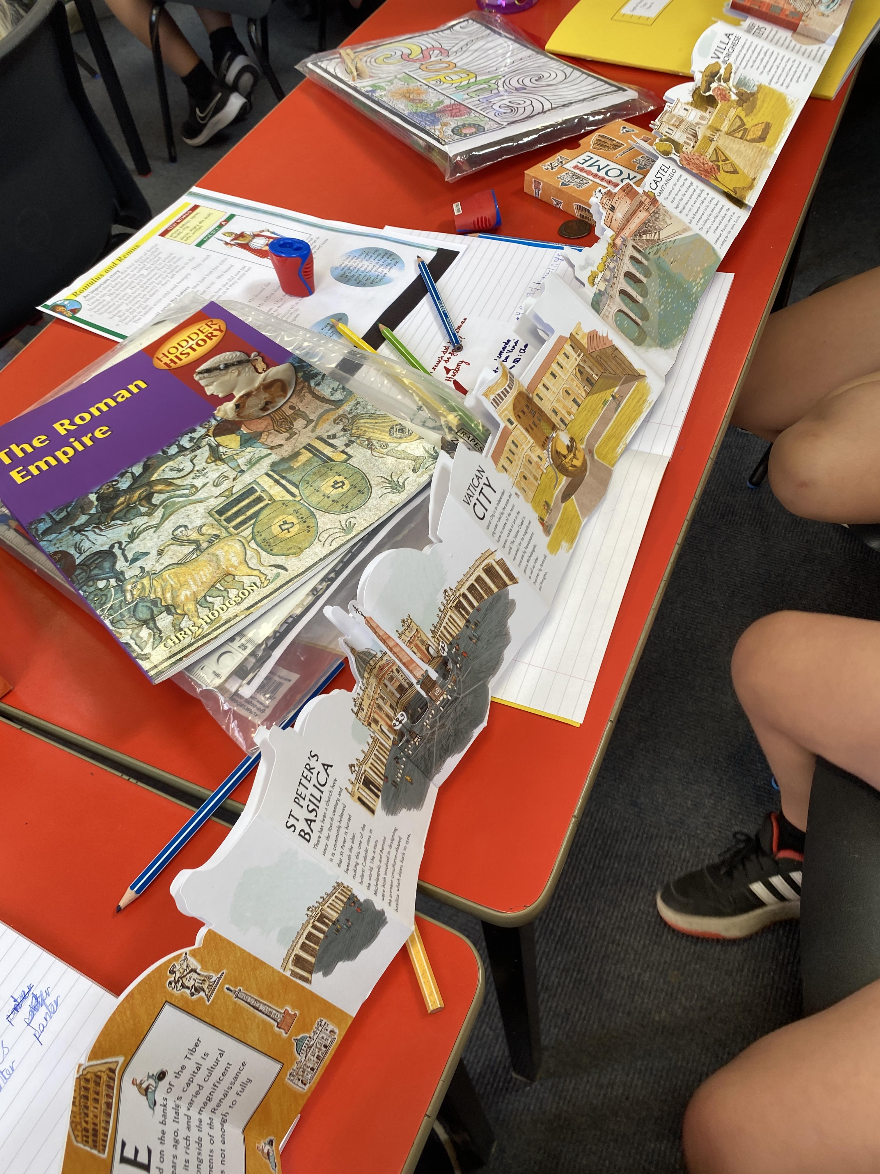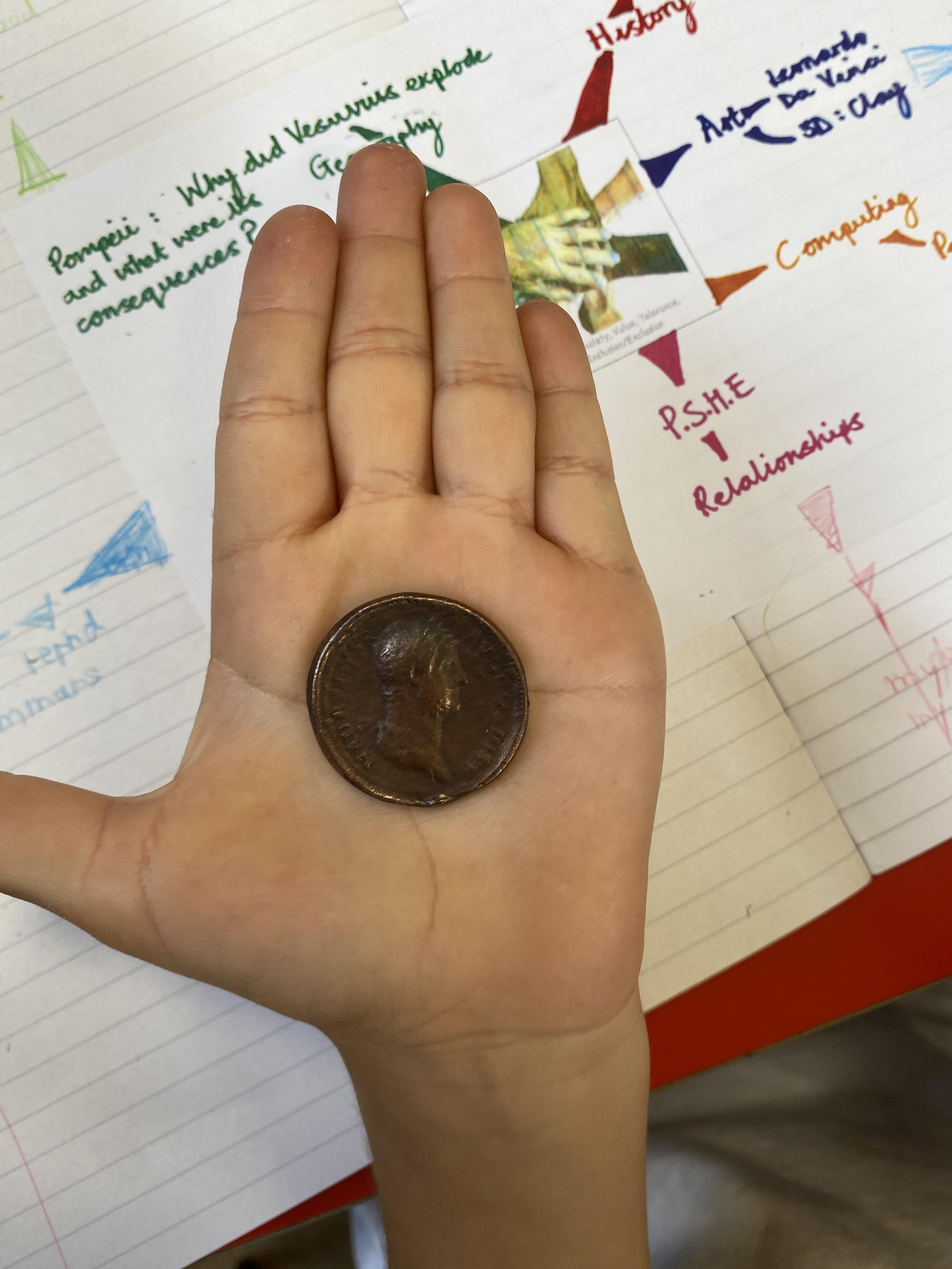 In History, the children worked as detectives to examine, 'Who were the Romans', using a variety of historical evidence, including real Roman coins!